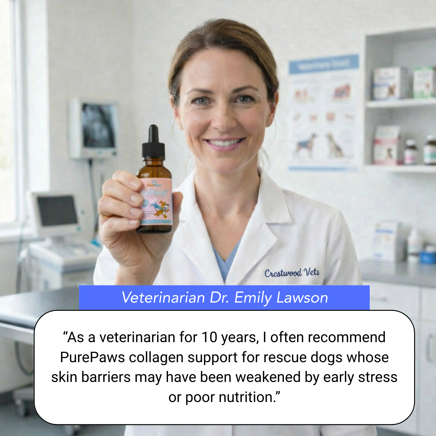 "For dogs with sensitive skin, I use Pure Paws collagen as part of a comprehensive approach and often recommend it to pet parents looking to support long-term comfort."